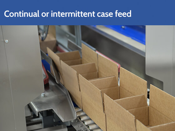 Consistent case feed is ensured whether spaced or continuous. The pacer belt infeed separates and spaces the cases precisely for flap closing and sealing.