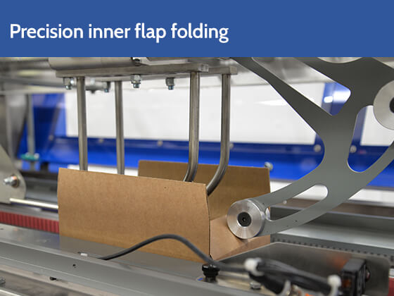 Inner flaps are closed by either a reciprocating or rotary tucker, depending on the speed and application. The robust mechanisms precisely break the scores and positively fold the inner flaps to facilitate outer flap closing.